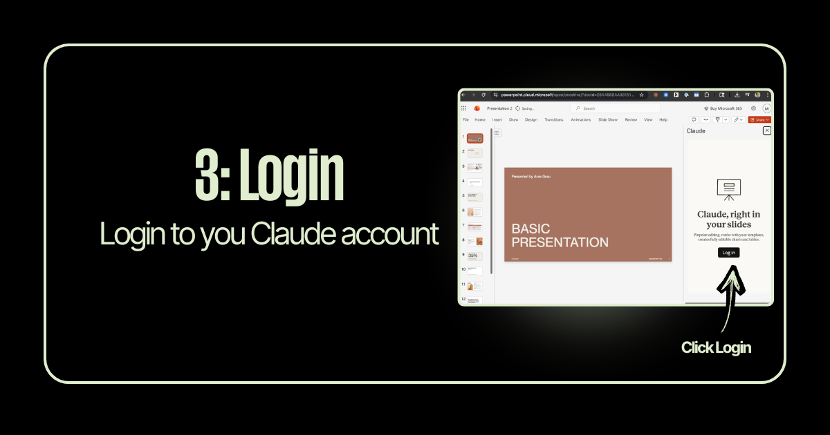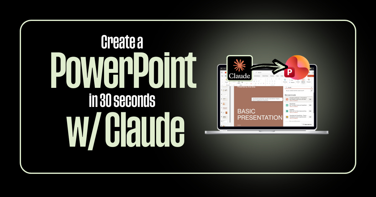Go to the Home tab, click “Add-ins,” search for “Claude,” and hit Add. Anthropic built a native integration that lives right inside your PowerPoint toolbar. It’s not a workaround or a hack, it’s an official add-in.