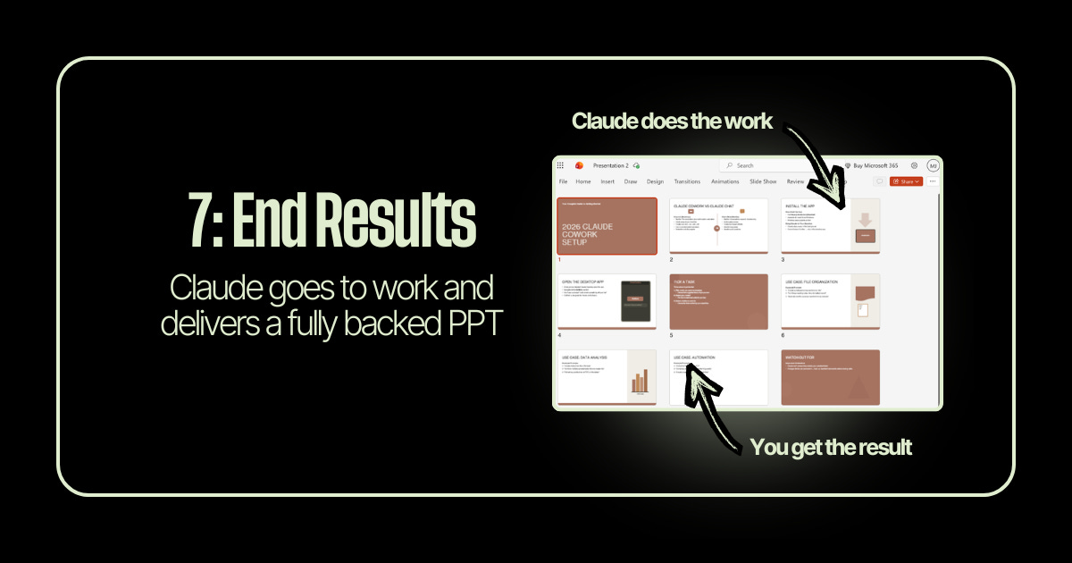The whole setup from Step 1 to Step 4 takes about 60 seconds the first time. After that, Claude is just there every time you open PowerPoint.