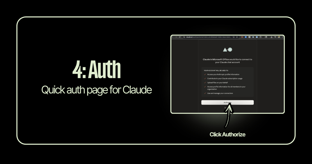 A quick authorization page will pop up asking you to connect Claude to Microsoft Office. Click “Authorize” and you’re linked up.