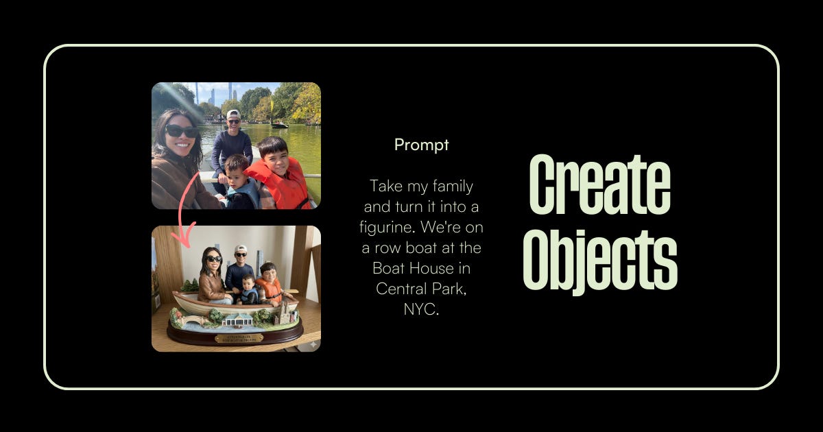 You upload a photo, could be your family, your team, a moment that mattered — and ask Nano Banana to turn it into a physical object. A figurine. A snow globe. A miniature scene.