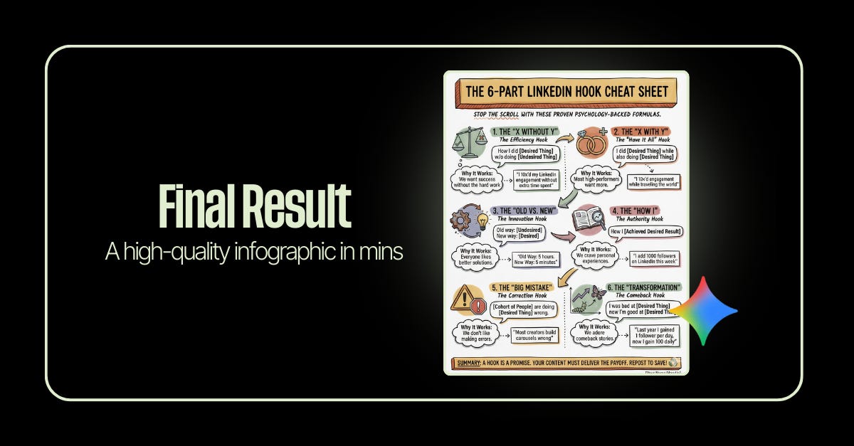 Now I can create a solid infographic in under a minute using AI—no Canva templates, no wrestling with layouts, no creative burnout.